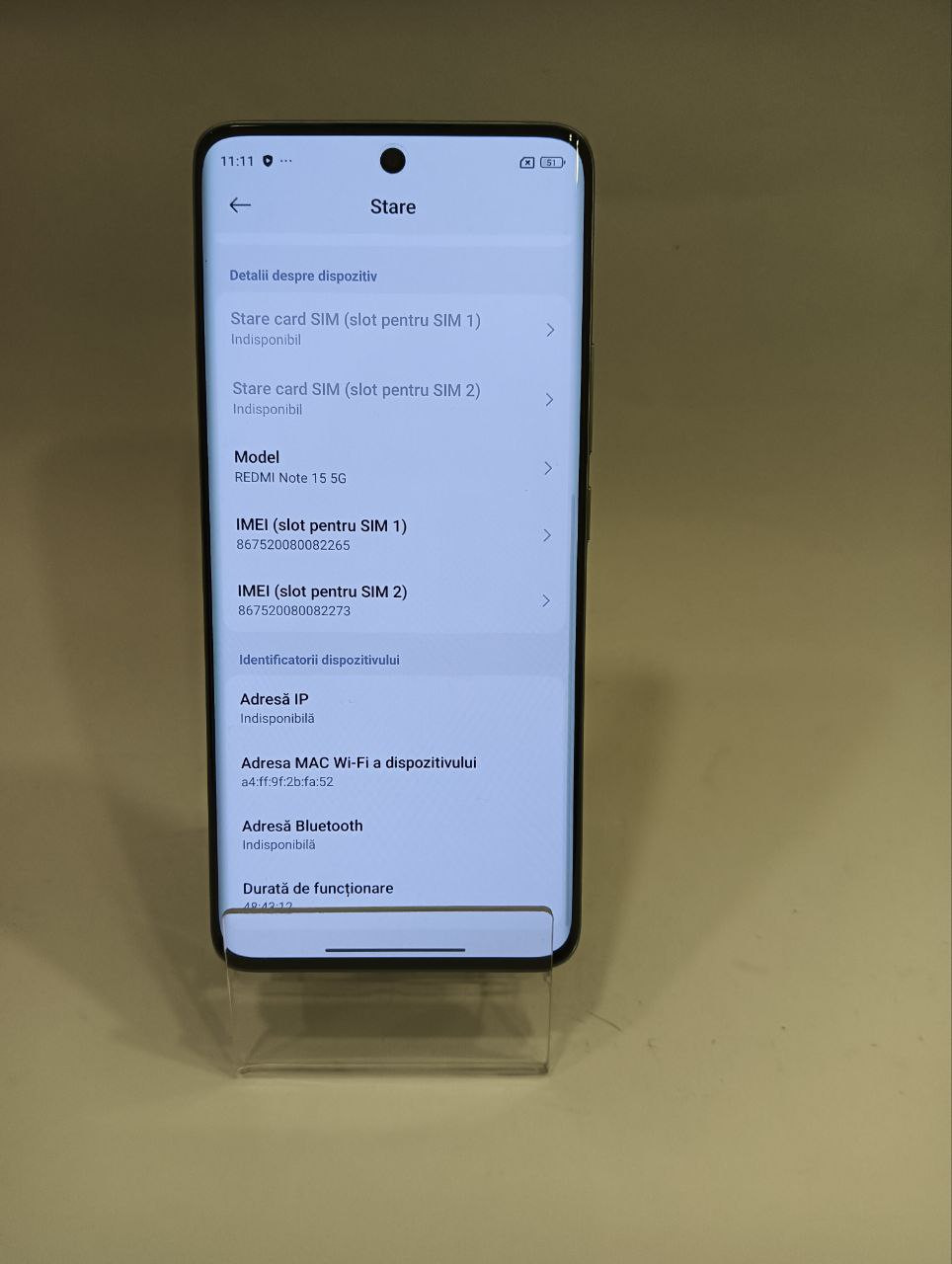 - Starea Display: Fără urme de utilizare. Fără zgârieturi sau pete