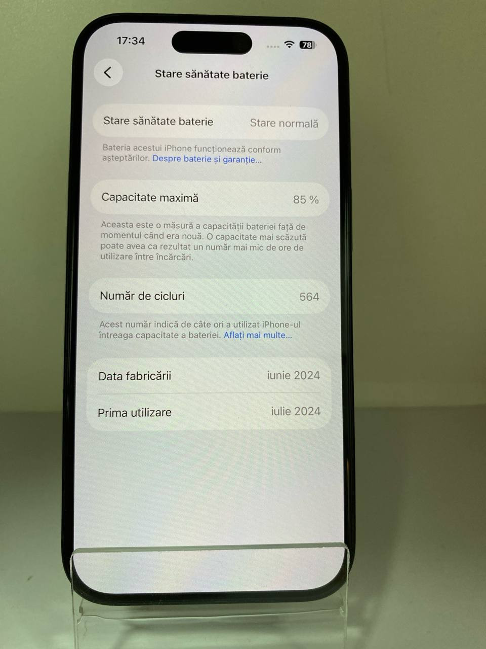 - Sănătatea Bateriei: 85%