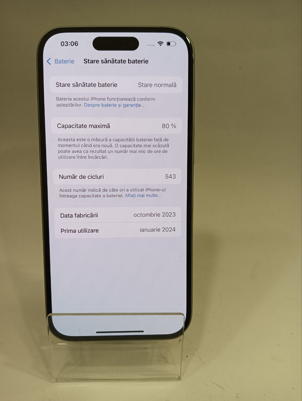 - Sănătatea Bateriei: 80%