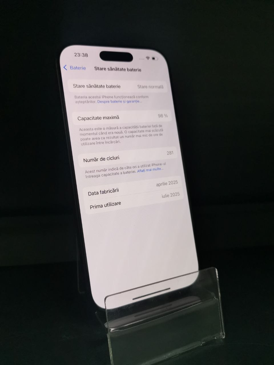 - Sănătatea Bateriei: 98%