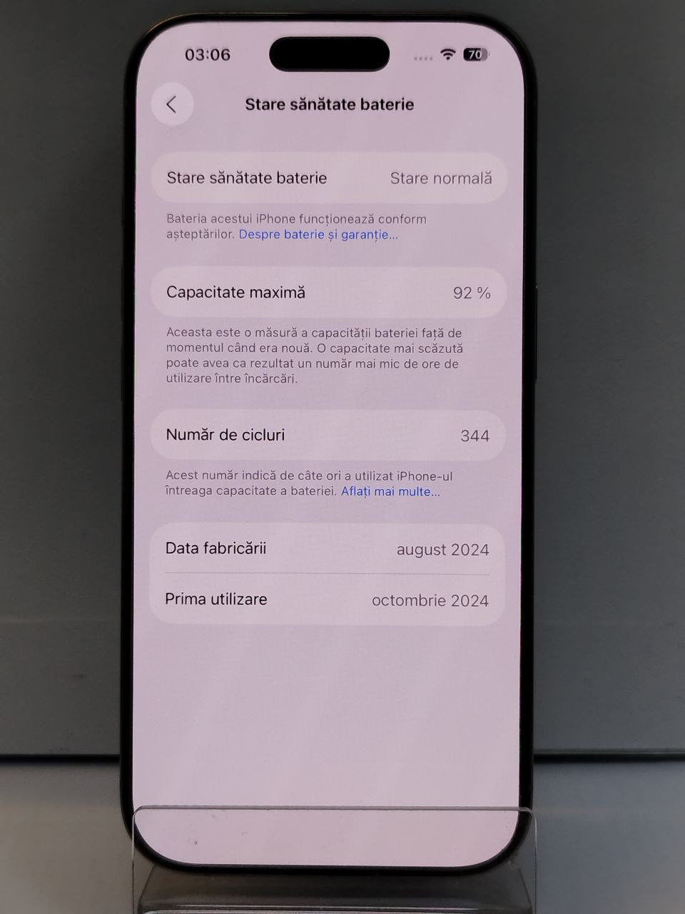 - Sănătatea Bateriei: 92%