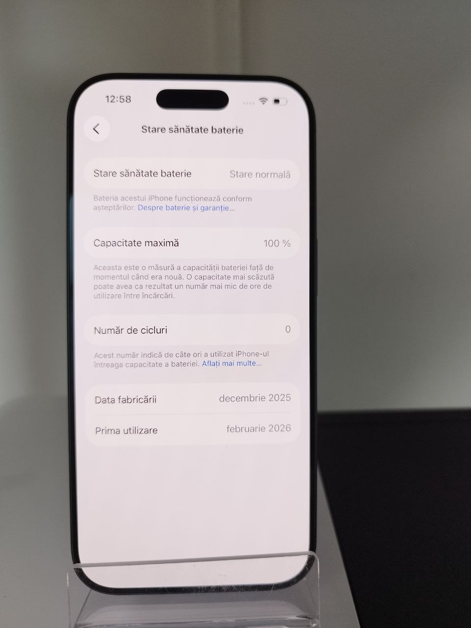 - Sănătatea Bateriei: 100%
