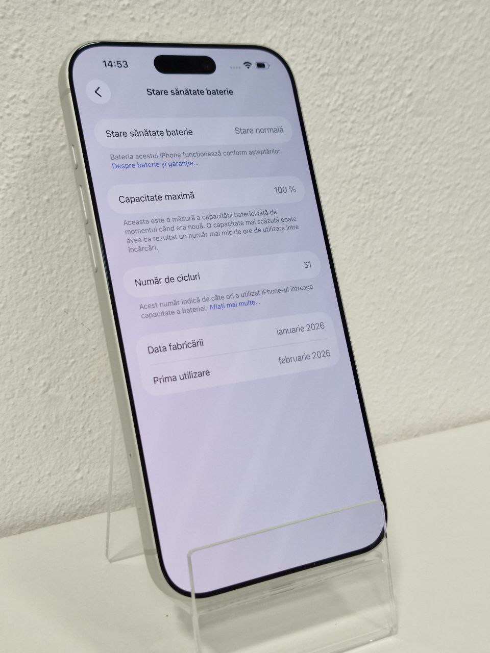 - Sănătatea Bateriei: 100%
